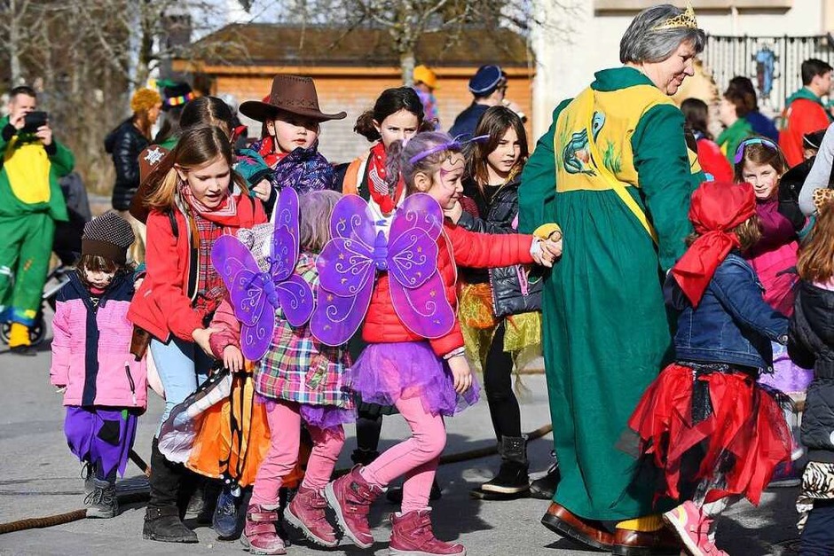 Zahlreiche Frösche bevölkerten am Samstag die Straßen in Wellendingen. Nachdem der Narrenbaum gestellt war, feierten große und kleine Frösche inklusive Musik eine rauschende Kinderfasnet.