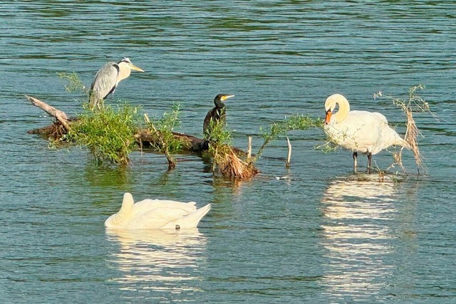 Das friedliche Miteinander dieser vier Vögel hat Katja Nutto am Rhein bei Weisweil mit ihrer Kamera eingefangen.